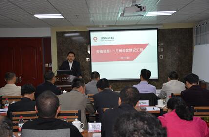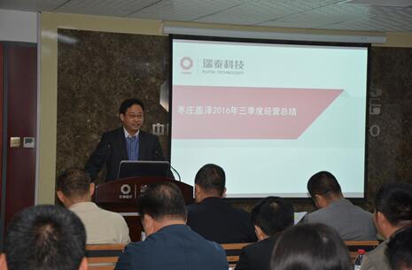 最后瑞泰科技总经理佟立金做了总结点评,并做出重要指示,要求各子公司认清位置,竭尽全力,同时部署了下一阶段的重点工作和措施,一、再一次明确目标,想方设法完成下达的利润指标;二、全力以赴抓存货和应收款的管理,要分解细化,责任到人,严格考核; 三、全力谋划好2017年的工作,早谋划,早动手,同时宣布启动2017年对标工作;四、加强沟通和交流,互通有无。最后,佟总指出2016年是瑞泰科技困难的一年,虽然遇到困难,只要大家按照指定的目标去奋斗,明年就有希望,瑞泰的明天就会更好!