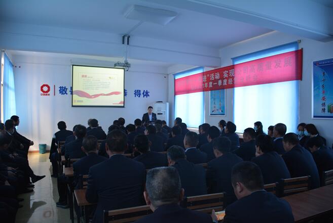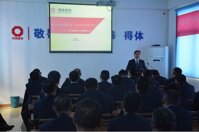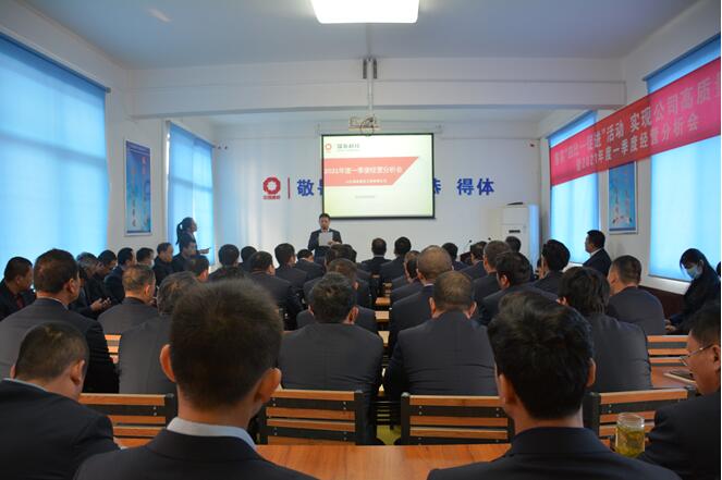 2021年4月9日上午,瑞泰盖泽在基地二楼会议室召开2021年度一季度经营分析会。公司大值班长及以上工程管理人员、各部门行政科室人员共计77人参加会议,会议由党支部书记、副总经理朱韬主持。